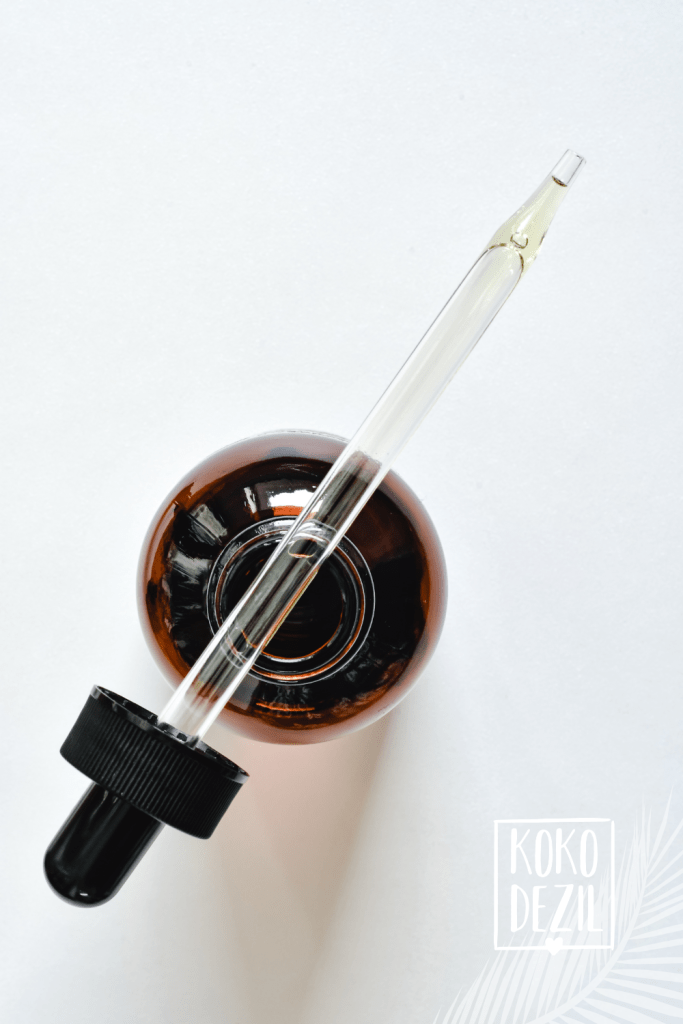 > Ingrédients : huile de pépin de raisin*, huile de soja*, extrait de géranium rosat*, extrait d’hélichryse* – * Qualité organique ou naturelle.
